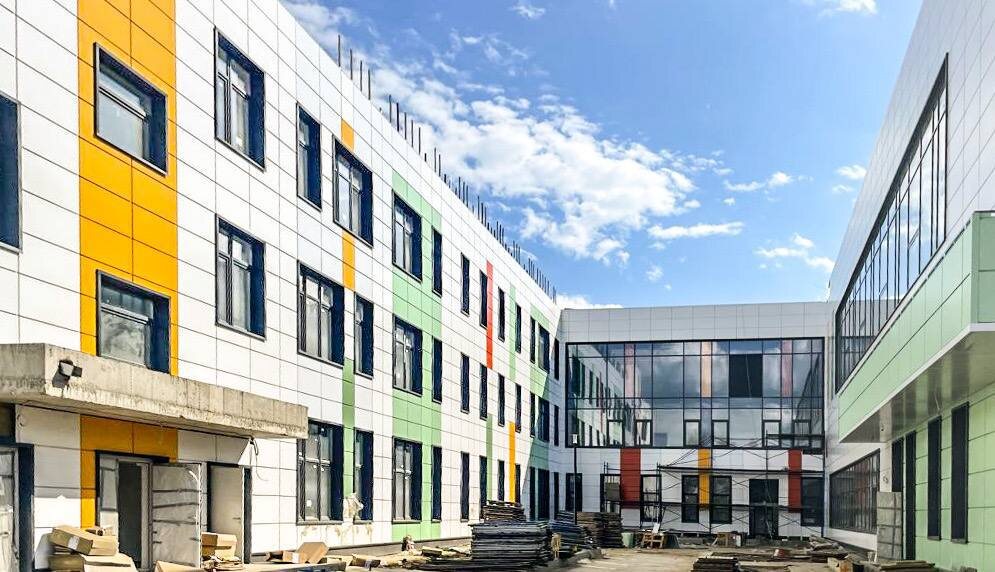 На улице Макаренко в микрорайоне Барыбино активно идет строительство современного образовательного учреждения на 550 учебных мест. Основные строительные этапы завершены, рабочие приступили к завершающей отделке помещений. Здание оснащается оборудованием и мебелью.