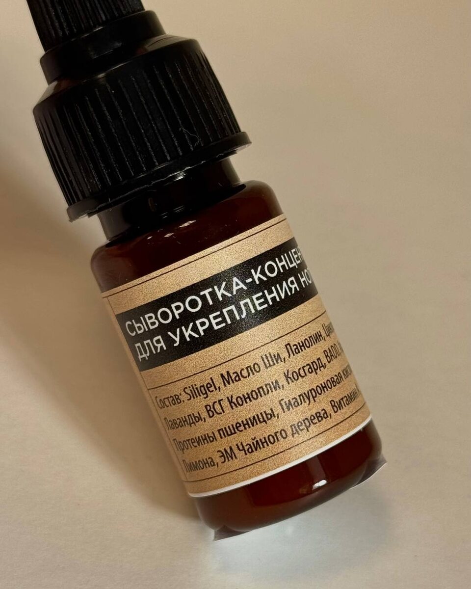 Ломкие, слишком тонкие после геля и слоящиеся ногти, либо онихолизис — отслоение ногтевой пластины от ногтевого ложа. Ваша печаль и боль? По запросу мастеров маникюра и подолгов, мы создали сыворотку, решающую эти задачи! Делимся с вами этим маленьким чудом! Уникальная формула с молекулой BADD (инновационная «строительная» молекула, которая заново соединяет разрушенные дисульфидные связи в структуре ногтей и волос) восстанавливает ногти изнутри. Кератин и гиалуроновая кислота дарят увлажнение и блеск. Масло ши питает, а масла монарды, лаванды и чайного дерева лечат и защищают от воспалений и грибка. Просто нанесите пару капель на ногти и кутикулу, мягко помассируйте и вдохните свежий цитрусово-травяной аромат. Почувствуйте, как ваши ногти оживают! Эта сыворотка — настоящее спасение для поврежденных ногтей. Забудьте о ломкости и сухости! С этой сывороткой ваши ногти будут крепкими, блестящими и здоровыми. Скоро вы снова сможете крепкими ногтями оттирать пятнышко, закручивать шуру