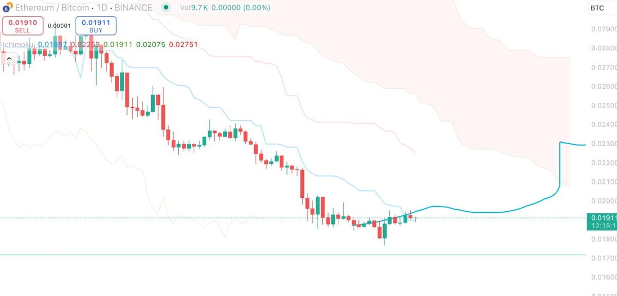 Эфир вроде как начинает показывать силу по отношению к биткоину
