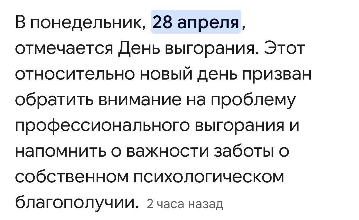 Сегодня отмечается День выгорания. Идеальный праздник для первого дня рабочей недели.
