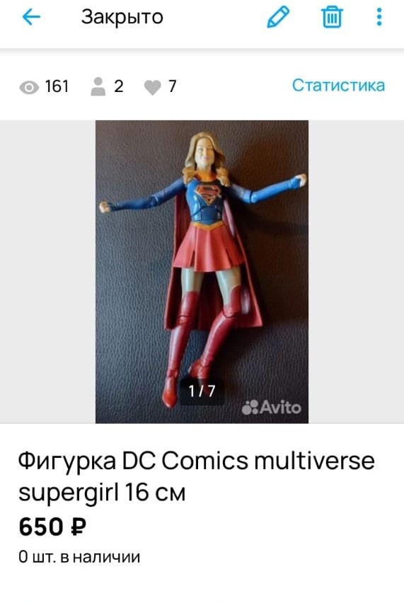 Всем здравствуйте! В апреле случилось ещё две продажи из категории игрушки. Вот такая фигурка supergirl от hasbro. Название мне пришлось даже гуглить по фото. В свое время дочка запросила ее в магазине "Дочки сыночки", там была серия этих игрушек со скидками. Причем, там ещё нога была в комплекте от другого персонажа, задумка производителя такая: купи несколько разных персонажей и собери еще одного. В блистерах с этими игрушками у кого что было: у кого тело, у кого рука, у кого нога. Ногу эту я не нашла, заныкали куда-то. Дочка серию собирать передумала, куколка кочевала из ящика в ящик. В итоге ее купила девушка-коллекционер. Я снижала цену, начинала от тысячи рублей, но никому не надо. Такие вещи можно смело помещать в коллекционирование, а не в товары для детей и игрушки. Ее купили не для ребенка. Как, впрочем, и следующий лот. Запчасти от игрушек bruder. Их собирают, ремонтируют и ставят на полки взрослые мужчины. На фото ключик от контейнера (отдельно ключик у меня не про