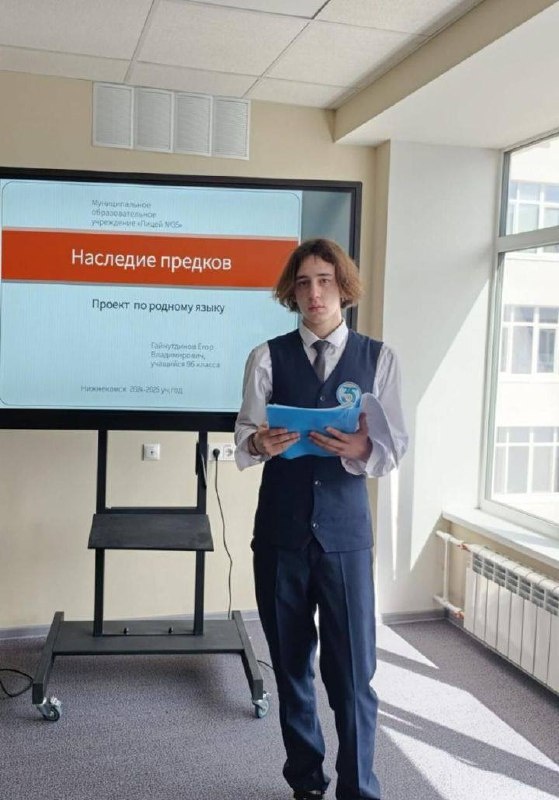 15 апрель көнне Түбән Каманың 35нче лицей укучылары уку-фәнни эш проектларын яклаганнар👍 9нчы класс укучысы Егор Гайнетдинов «Наследие предков»🌏 темасына әзерләгән проектын яклаган👏 💥Егор, туган тел укытучысы Рәсимә Кәримова җитәкчелегендә, үз гаиләләренең керәшеннәр яклап нәсел тамырларын өйрәнгән. Шулай ук ул, үз проекты кысаларында, «Керәшеннәр кемнәр алар?» дигән сорауга да фәнни җавап эзләгән. Теманы ачканда, Егор керәшеннәрнең бай традицияләренә, милли киемнәренә, бәйрәмнәренә дә зур урын биргән. Үз гаиләсенең нәсел агачын барлаган, гаилә мирасына да тукталган. Бөек Ватан сугышында катнашкан бабайлары турында да язган. Сүз уңаеннан, Егор – Красный Ключ поселогы керәшеннәреннән торган «Баш чишмә» ансамбленә йөрүче Роза Степановнаның туганының улы. Укытучылары җитәкчелегендә, укучыларның мондый проектларга алынулары халык культурасының, традицияләренең киләчәктә дә сакланып калачагына ышаныч уята. Ә боларны белгән яшьләрнең чын патриотлар булып үсәчәгенә өмет зур❤️🙏🏽 @tug
