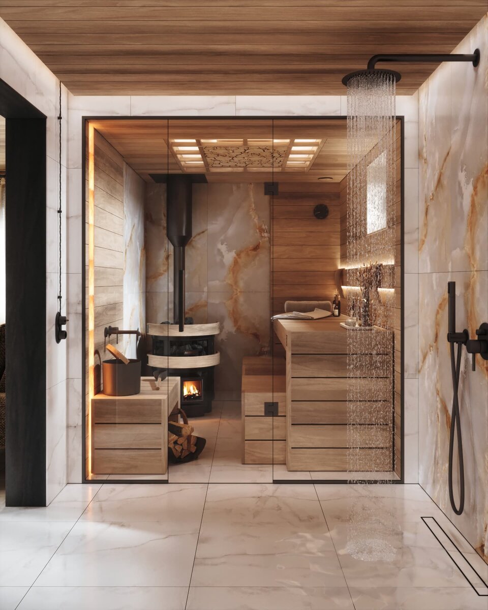 В дизайне банных комплексов все чаще используется стекло как один из ключевых элементов оформления. Его прозрачность и легкость позволяют создать атмосферу открытости и гармонии. Стеклянные перегородки, витражи, а также специальные стеклянные элементы в интерьере могут не только визуально увеличить пространство, но и добавить изысканности и современности. Рассмотрим, как стекло может преобразить банный комплекс и создать уникальную атмосферу. Первое, что приходит на ум при использовании стеклянных элементов в сауне, – это стеклянные стены и перегородки. Они помогают создать ощущение простора и легкости. Прозрачные стеклянные стены позволяют наслаждаться природными пейзажами. Кроме того, такие перегородки могут служить защитой, разделяя пространство на зоны, например, парную и душевую. Стекло также можно использовать в виде витражей или декоративных панелей. Они могут не только служить украшением, но и создавать игру света, а это, в свою очередь, добавляет к общей атмосфере уюта и тепл
