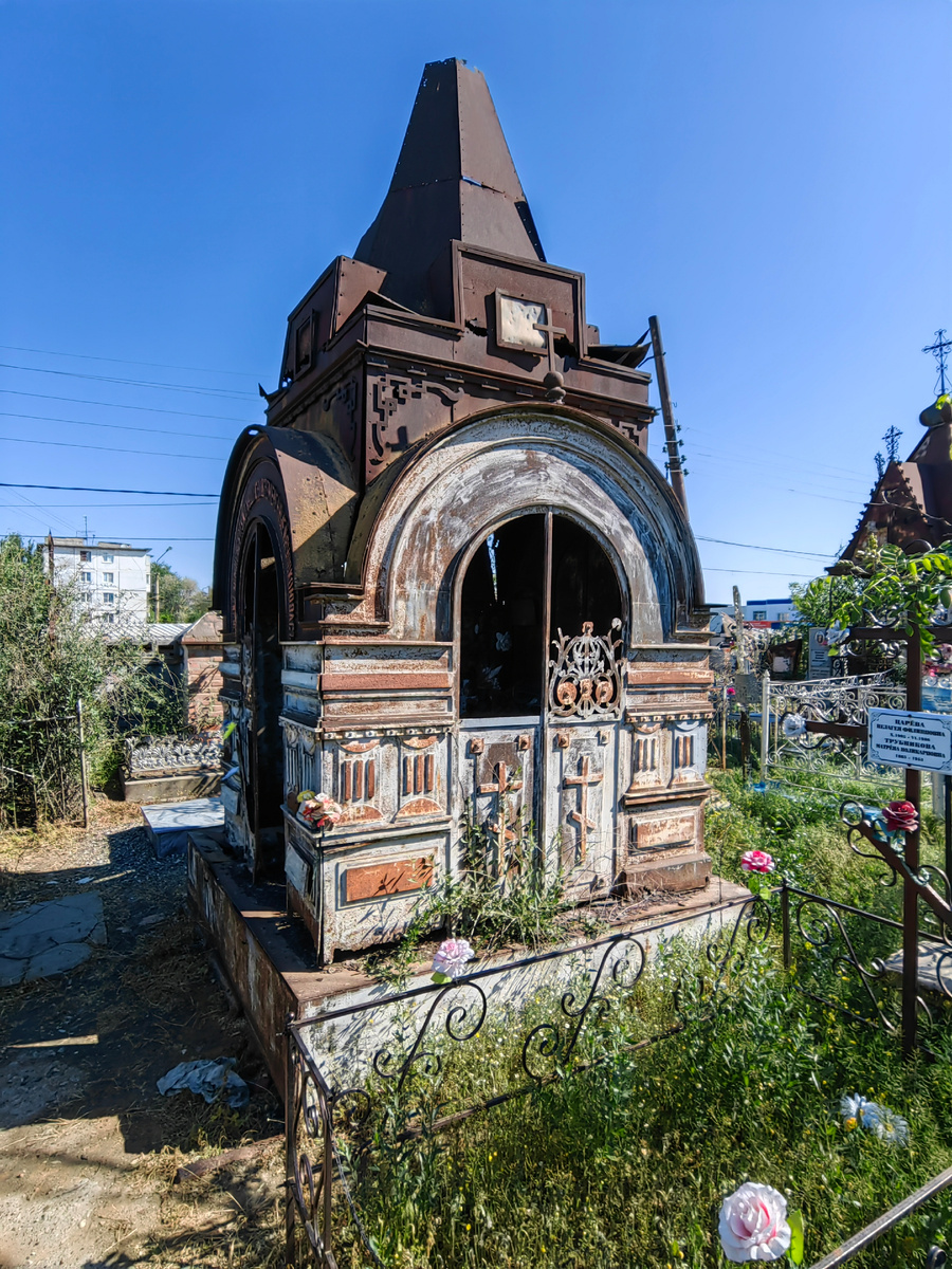 Во всех населенных пунктах, которые были образованы очень давно, конечно же, есть старые кладбища, где захоронения уже не производятся. Поэтому их смело можно считать музейными- ведь, посетив некрополь, вы многое узнаете о тех кто занимался развитием города много лет назад. В Астрахани, основанной в 1558 году, тоже есть большое старое кладбище. Но все исторические склепы находятся в аварийном состоянии, а старые каменные надгробия в большинстве своем перебиты, и на них уже значатся данные советских людей, а не граждан Россйской Империи - купцов, например. В этом плане особой информации во время посещения некрополя получить не удалось. Но визуально богатые захоронения мы увидели. Вот этот склеп впечатлил больше всего. На нем мы нашли клеймо изготовителя: "Заводъ Янчикова въ Астрахани" Сохранилось и упоминание фамилии тех, кто был похоронен а этом склепе: "Неустроевы" А так, лучше, конечно, сюда приходить с экскурсией. Есть частные гиды, которые это в Астрахани делают. Но у нас вре