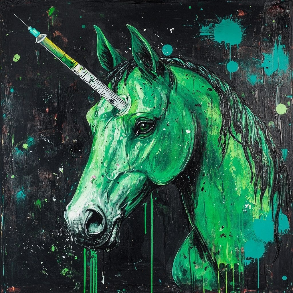 Создано на основе запроса: green mare nightmare fantasy fountain spray dripping paint syringe party