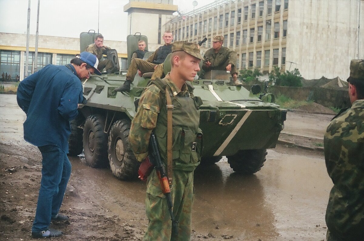 Вокруг места события быстро собралась толпа чеченцев. Некоторые из них попытались спровоцировать стороны на стрельбу, но у «федералов» хватило выдержки не поддаться не провокации. По счастью, все обошлось, но весь этот дурдом (продолжался еще сутки, пока «бордовые» не уехали восвояси, оставив на территории городка одну свою роту — для обозначения присутствия.