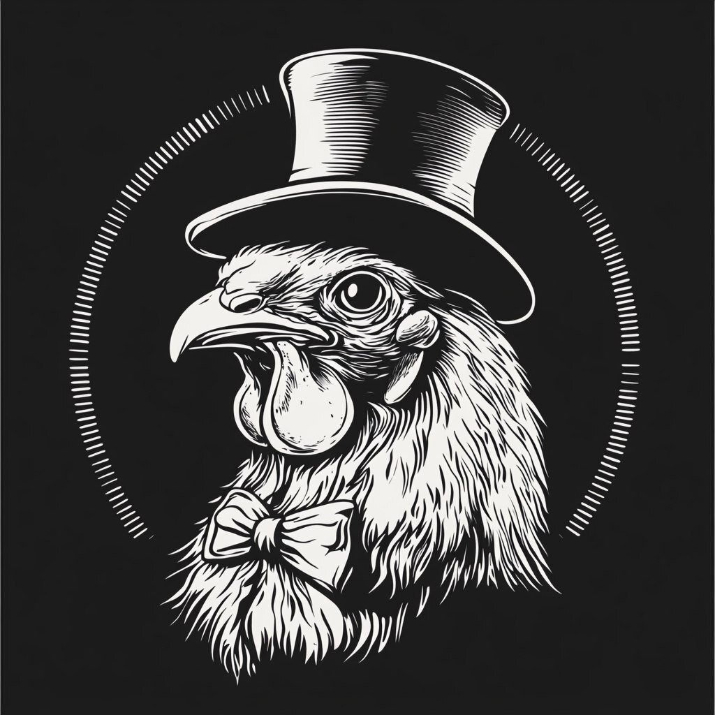 Создано на основе запроса: chicken wearing a tophat and monocole, monochrome, logo