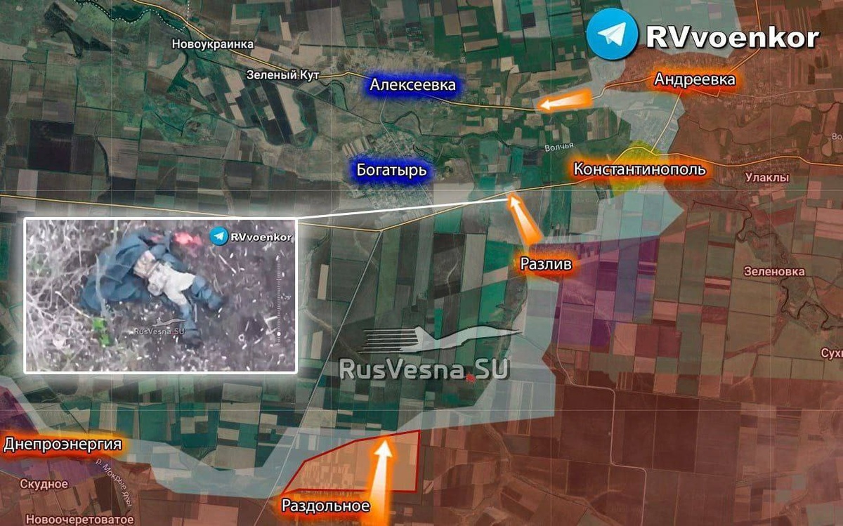 Армия России наступает к Богатырю, штурмуя опорники врага. ▪️Южно-Донецкое направление, Комаровский участок. Российские войска продвинулись севернее Раздольного вдоль ряда лесополос в направлении Богатыря. ▪️Также ВС РФ наступают от Разлива. ▪️Вражеские ресурсы сообщают, что украинские войска проводят контрдействия в районе Днепроэнергии. Die russische Armee rückt in Richtung Bogatyr vor und stürmt die Festungen des Feindes. ▪️Richtung Süd-Donezk, Abschnitt Komarowski. Russische Truppen rückten nördlich von Razdolnoye entlang einer Reihe von Waldgürteln in Richtung Bogatyr vor. ▪️Die russischen Streitkräfte rücken ebenfalls aus Rasliw vor. ▪️Feindliche Quellen berichten, dass ukrainische Truppen Gegenaktionen in der Region Dneproenergia durchführen.