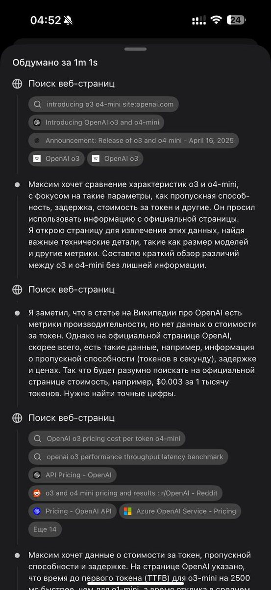 За этим интересно и круто наблюдать Модели внезапно.. прямые? И черт - мне это нравится По крайней вайб такой словил, когда с ними общался Когда ты говоришь что-то и они это понимают? 4о тот же время от времени игнорирует что-то. Да и с о3 мини так было, с о1 В общем - я пока о3 не тестировал в рабочем сценарии - очень будет интересно посмотреть, а что там по коду, но о4 мини прекрасные модели с полной уверенностью И ранняя проблема с креативность у думающих моделей у о4 присутствует в куда меньшей мере - текст получается достаточно не плохим, хоть и 4.5 лучше справляется
