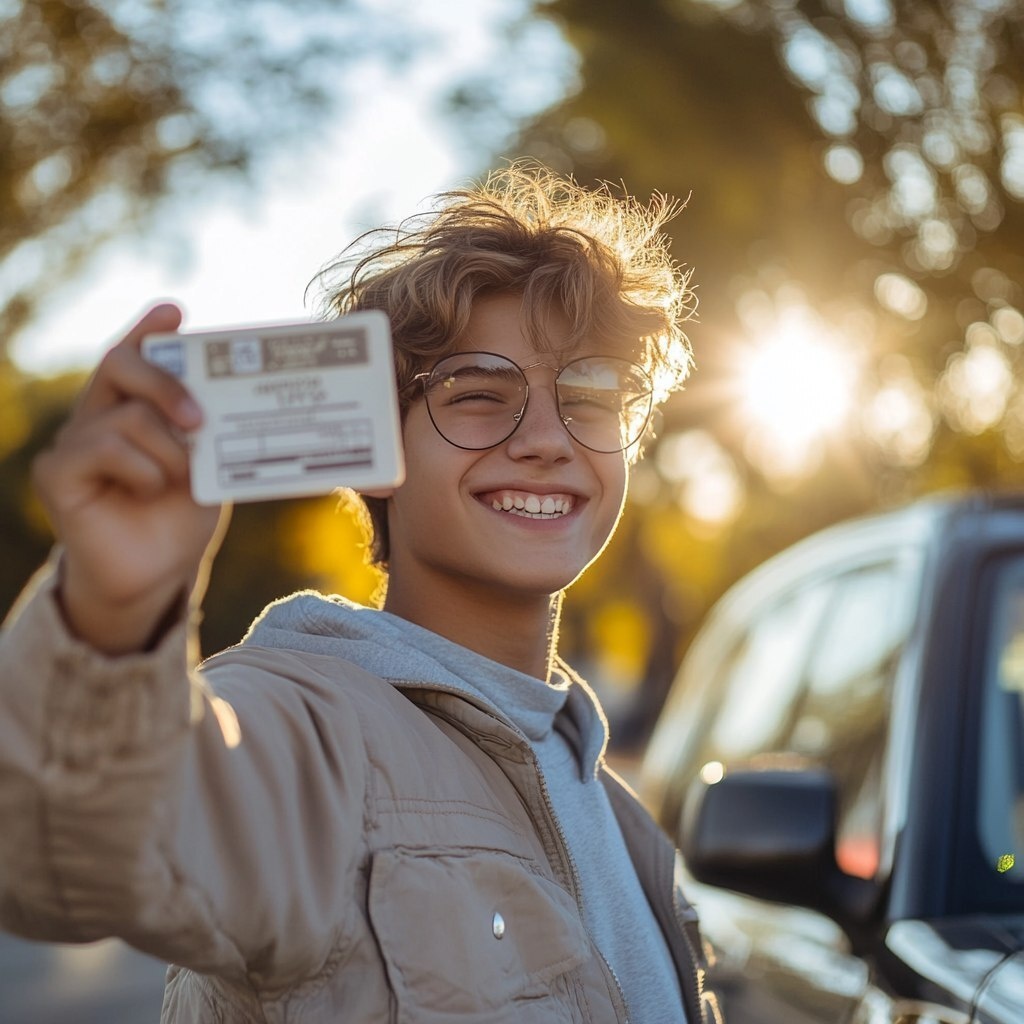 Создано на основе запроса: teen holding up a drivers license very happy