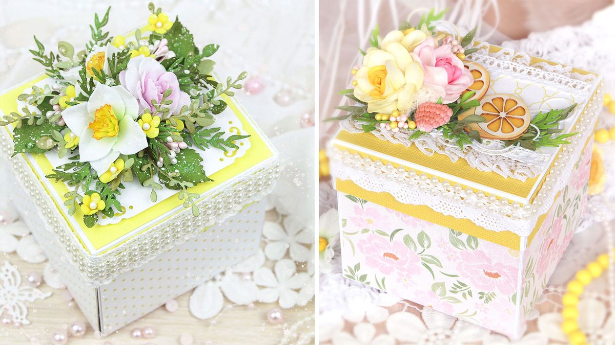 Как вам мои цветочные коробочки-открытки в желтом цвете? Коробочка с нарциссами и розами VS Коробочка с розами, лимонами и малиной