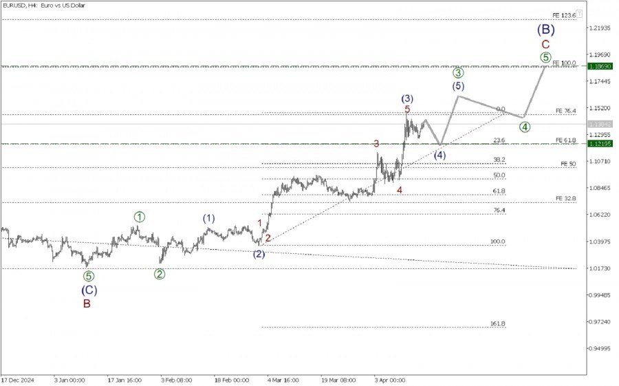 https://basechop.ru/wordpress/?p=38846 Предполагается, что в долгосрочной перспективе по криптовалютной паре EUR/USD формируется крупный зигзаг (A)-(B)-(C). Сейчас формируется крупная коррекционная волна (B), которая принимает форму восходящего зигзага A-B-C. На четырехчасовом таймфрейме представлена разметка конечной части коррекции B, после которой цена пошла вверх в импульсе C. Волна C – импульс, состоящий из подволн [1]-[2]-[3]-[4]-[5]. Завершены только первые две части – импульс [1] и коррекция [2]. В ближайшее время ожидается развитие второй половины крупной импульсной подволны [3], как показано на графике. Есть большая вероятность, что вся импульсная волна C завершится в районе предыдущего максимума 1.186. Однако после волны [3], ожидается небольшой откат вниз в коррекции [4], которая может принять любую коррекционную модель. Пока сложно сказать какую. В текущей ситуации можно рассматривать открытие длинных позиций с целью забрать прибыль на завершении импульсного тренда. Либ