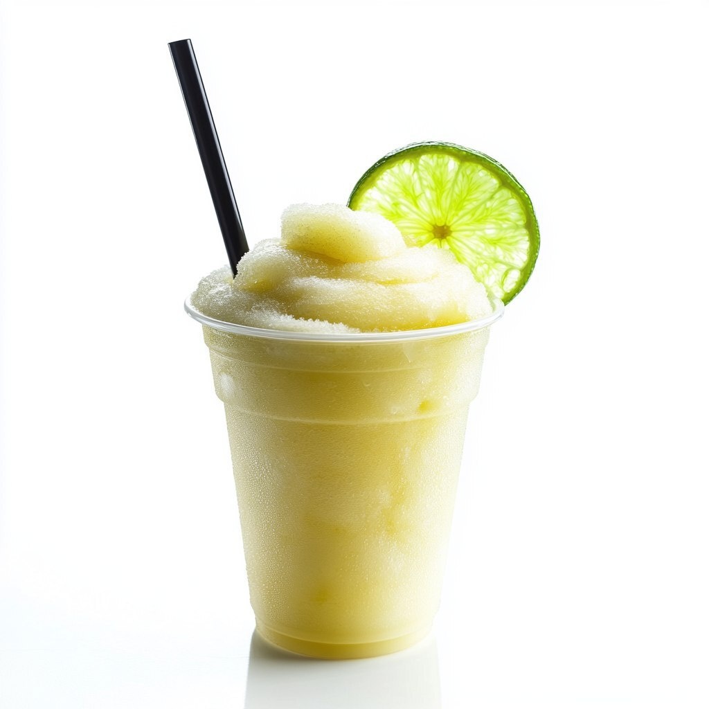 Создано на основе запроса: an isolated frozen lime margarita served on a 12 oz plastic transparent cup with a black straw