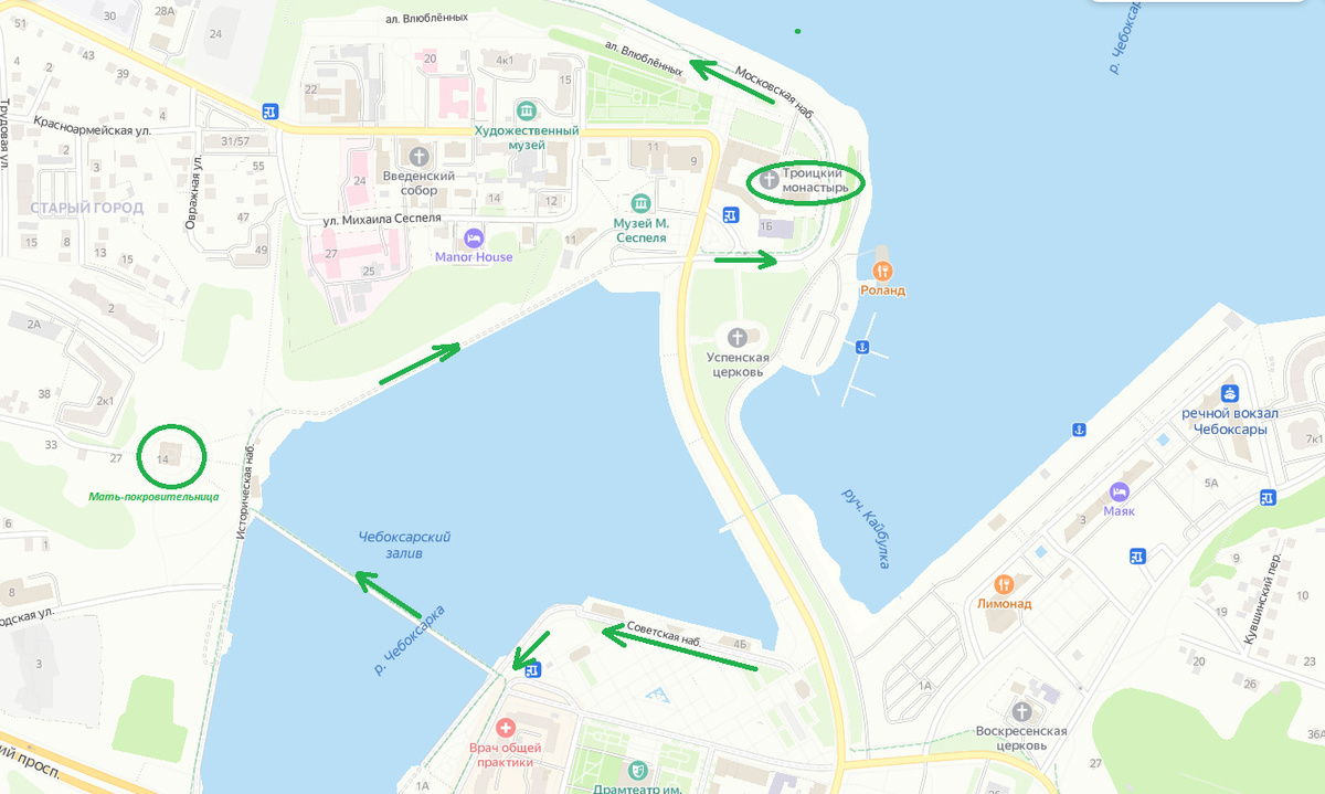 Маршрут и карта прогулки по центру Чебоксар