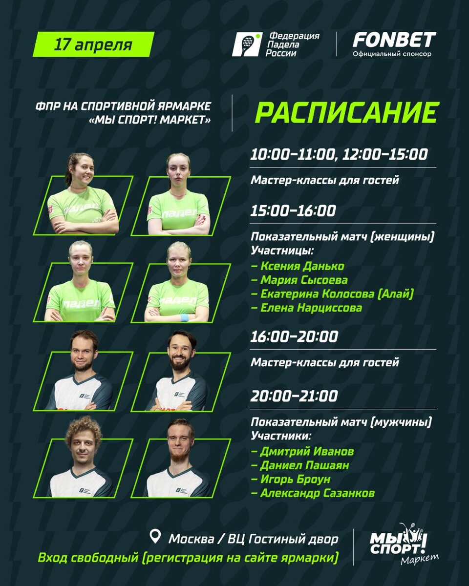 ΠΏΠ°Π΄Π΅Π»ΠΈΡΡΠΎΠ² ΡΡΡΠ°Π½Ρ! π© 15:00 β ΠΆΠ΅Π½ΡΠΊΠΈΠΉ ΠΌΠ°ΡΡ Ρ ΡΡΠ°ΡΡΠΈΠ΅ΠΌ ΠΡΠ΅Π½ΠΈΠΈ ΠΠ°Π½ΡΠΊΠΎ, ΠΠ°ΡΠΈΠΈ Π‘ΡΡΠΎΠ΅Π²ΠΎΠΉ, ΠΠΊΠ°ΡΠ΅ΡΠΈΠ½Ρ ΠΠΎΠ»ΠΎΡΠΎΠ²ΠΎΠΉ (ΠΠ»Π°ΠΉ) ΠΈ ΠΠ»Π΅Π½Ρ ΠΠ°ΡΡΠΈΡΡΠΎΠ²ΠΎΠΉ. π¨ 20:00 β ΠΌΡΠΆΡΠΊΠΎΠΉ ΠΌΠ°ΡΡ Ρ ΡΡΠ°ΡΡΠΈΠ΅ΠΌ ΠΏΠΎΠ±Π΅Π΄ΠΈΡΠ΅Π»Π΅ΠΉ Π½Π΅Π΄Π°Π²Π½ΠΈΡ