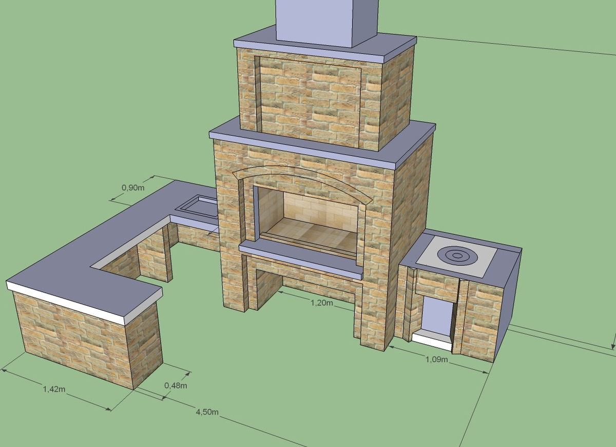 Проектирование комплекса начинается с выбора элементов, которыми заказчик хочет пользоваться. Будь то один мангал с рабочим столиком или печной комплекс, включающий в себя также мини русскую печь, коптильню или песку казанку, предварительно прорисовываем эскиз и предлагаем различные варианты. Можно выделить рамку на мангале, можно наоборот утопить. Добавляем рабочую зону с мойкой и также рядом с печкой-казанкой решено было добавить рабочее место
