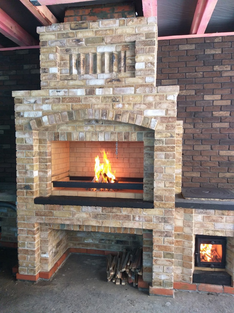 Печной комплекс выполнен из кирпича ручной формовки.