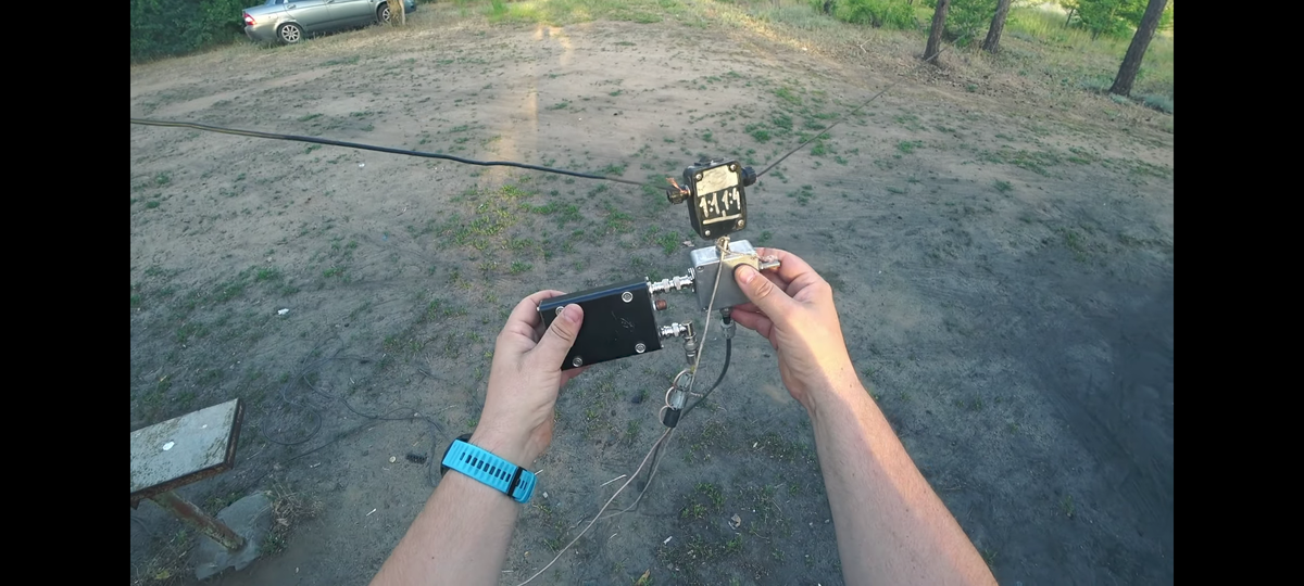 Антенна Дельта давно известна радиолюбительскому сообществу. Из ее преимуществ: она менее шумная, у нее есть направленность. Про направленность это конечно зависит от ее расположения. Горизонтальная дельта излучает вверх, а вертикальная - перпендикулярно плоскости треугольника. Точек подключения у нее много и они имеют разное сопротивления. В этой статье я рассмотрю вариант вертикальной дельты с запиткой снизу. В таком положении ее сопротивление около 200 Ом, а значит нужен будет балун 1:4. На этот раз балун будет намного проще. Антенна замкнутая, поэтому с ней проблем меньше. Основой будут две ферритовые трубки, взятые с VGA кабеля монитора. Их надо скрепить вместе клеем или изолентой. Далее нужно намотать обмотки. Первичная содержит 2 витка, а вторичная 4. Провод нужно подобрать такой, чтоб намотанный трансформатор полностью заполнял внутренности трубок. Я использовал толстый провод МГТФ. Почему именно такое количество витков? А это можно проверить через анализатор, подключив к в