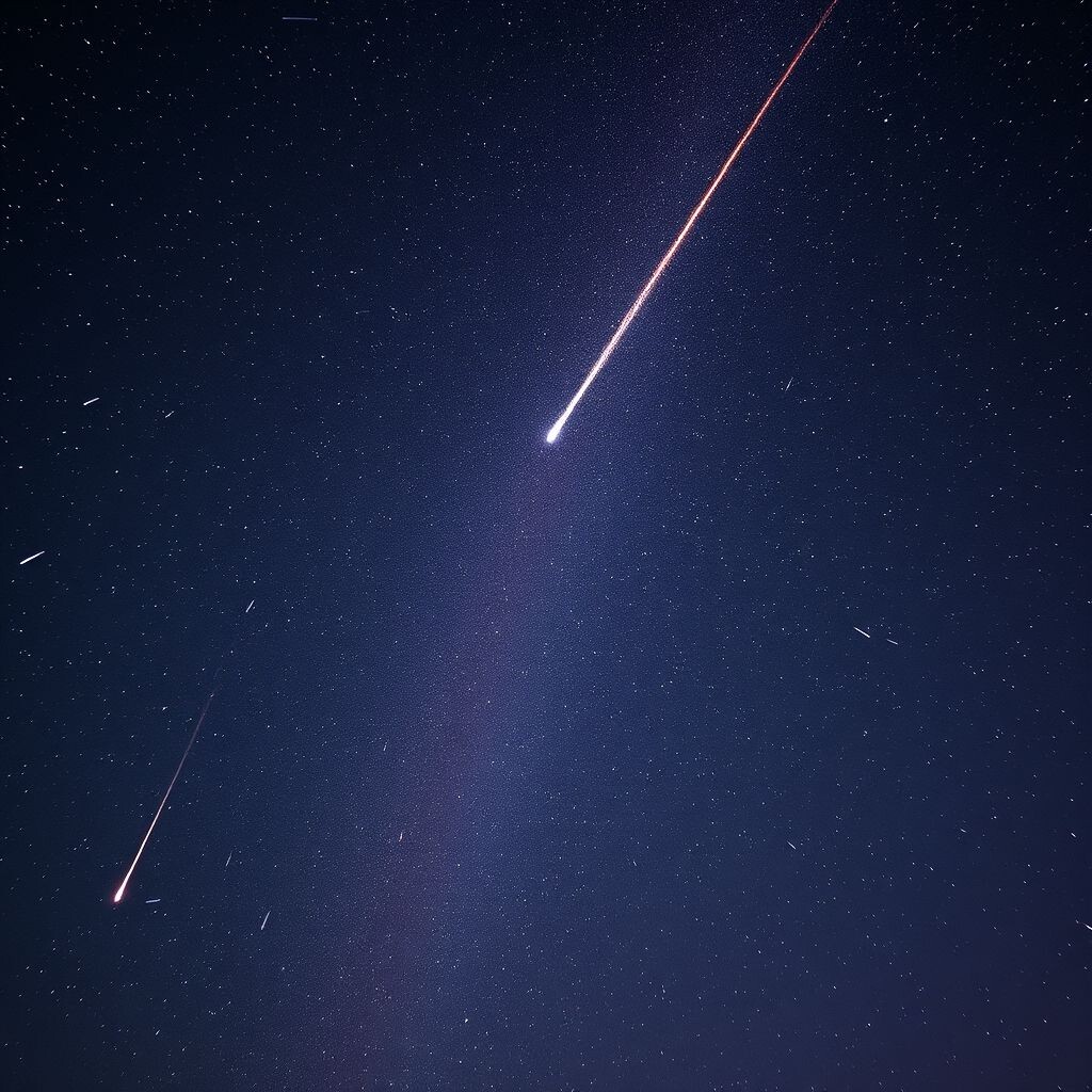 Каждую ночь звёздное небо может дарить нам удивительные сюрпризы, но особенное зрелище происходит, когда над головой проносится метеорный поток. Это явление поражает своей красотой и заставляет многих загадывать желания. Но что стоит за этим космическим фейерверком? Метеорный поток — это явление, при котором множество метеоров (в народе — "падающих звёзд") появляется на небе за относительно короткое время. Обычно такие потоки можно наблюдать ежегодно в определённые даты. Во время пика активных потоков можно увидеть от десятков до сотен метеоров в час! Каждый метеор — это крошечная частица пыли или камня, сгорающая в атмосфере Земли. Хотя они выглядят как звёзды, метеоры на самом деле очень малы — зачастую размером с песчинку или горошину. Источником метеорных потоков чаще всего являются кометы. Когда комета проходит по своей орбите вблизи Солнца, она теряет часть вещества — лёд испаряется, а пыль и мелкие обломки остаются в космосе, создавая длинный след. Если Земля на своём пути вокр