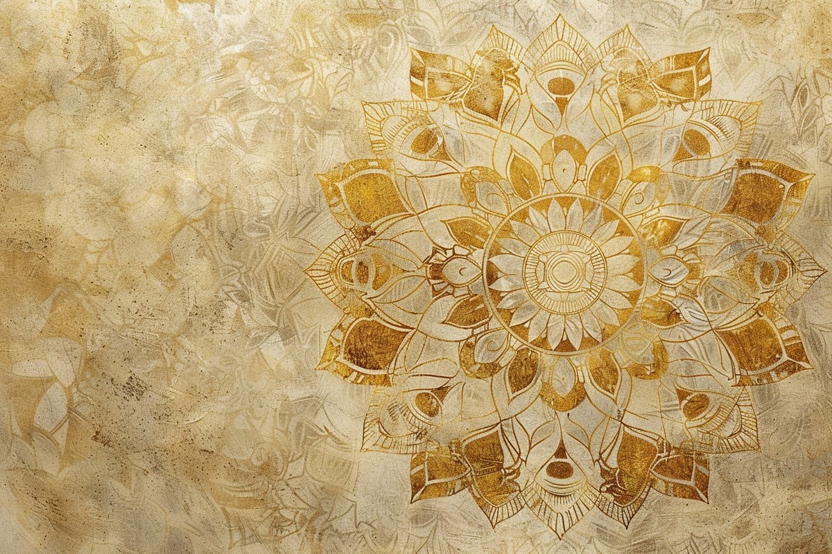 Создано на основе запроса: Gold mandala repeating pattern, outlined, soft cozy, antique paper background