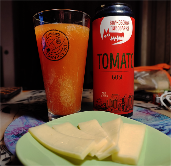 Да, несомненно: речь пойдёт о Волковской пивоварне. Томатка от Волчарни - одна из наиболее доступных и в территориальном смысле, и в ценовом, так что пройти мимо неё - никак невозможно. Тем дегустаторам, которые сетуют, что, мол, у томатки пена негустая, необильная и кратковременная, можно посоветовать при случае попробовать томатный сок с обильной пеной. Только от дома потом далеко не отходите 4-). У волковской томатки с пеной было всё нормально: она есть, но, как полагается томатке - её немного и она нестойкая, так что потом можно и прогуляться 5-). Цвет, как видите, морковный, и это должно радовать: когда цвет отдаёт в красное, всё чудится, что пьёшь не пиво с добавлением томатной пасты, а томатную пасту, слегка разведённую пивом. Аромат чётко показал томаты, хорошо сдобренные острым перцем. На втором плане была некая довольно прямолинейная горечь и вдалеке - какие-то пряности. Последующее изучение этикетки рассказало о (в порядке перечисления) экстракте чёрного перца (это он горечь