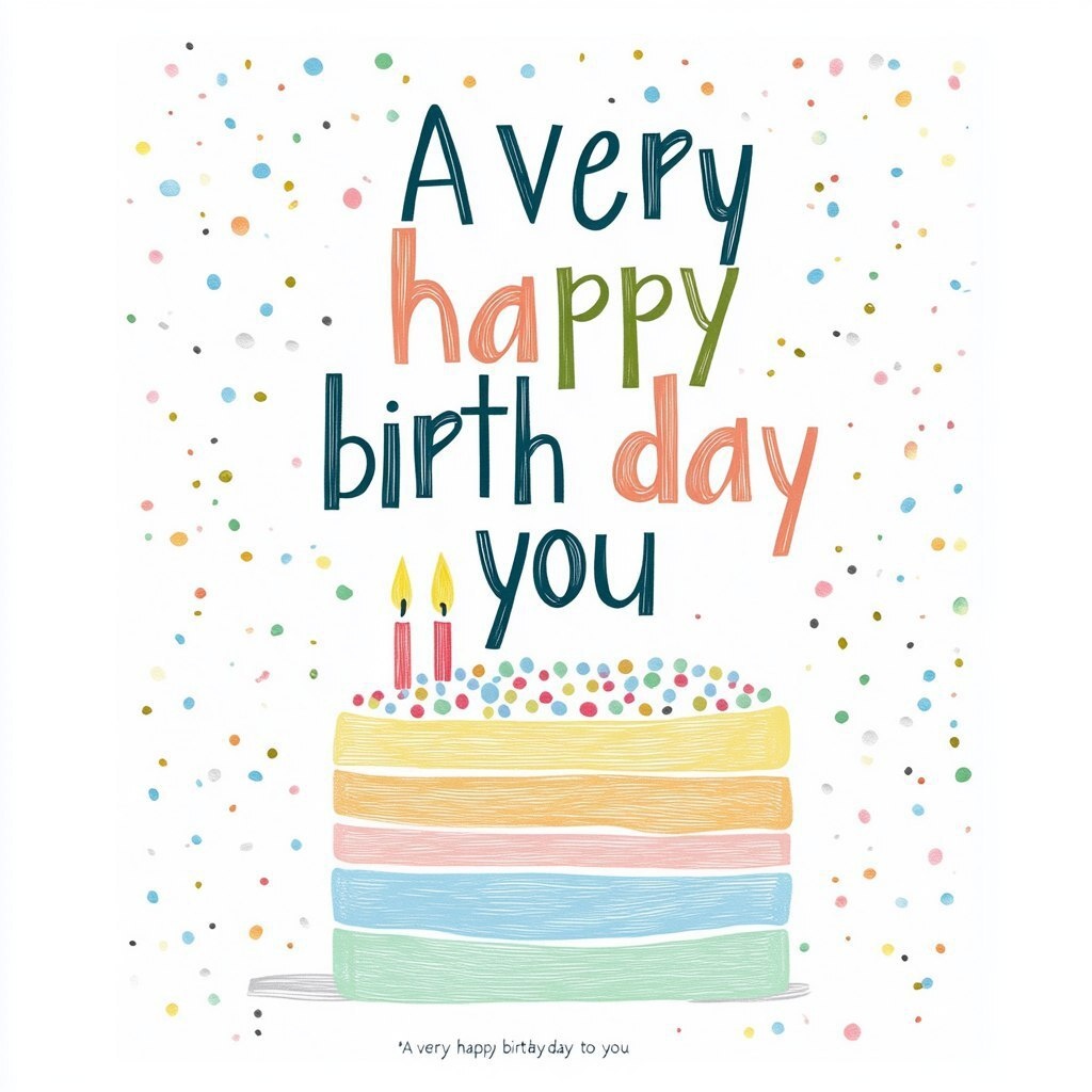 Создано на основе запроса: A colorful illustration of the text "A very happy birthday to you" on top of an isolated white background, with a
