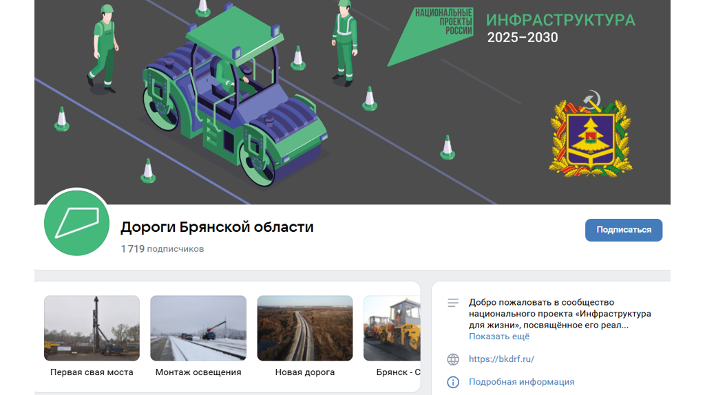 Об улучшении дорожной инфраструктуры расскажет группа «Дороги Брянской области» в соцсети