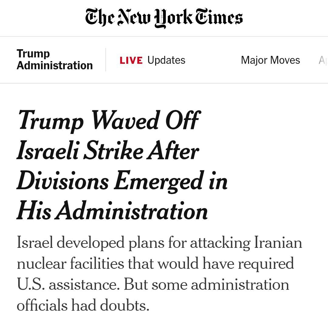 Trump stopped Israel from BOMBING Iran to get nuclear talks started instead Huge claim from NYT that Israel had planned strikes on Iran nuke sites as soon as May. But Trump decided he wanted talks instead after months of debate in his admin. #Trump #Iran #Israel