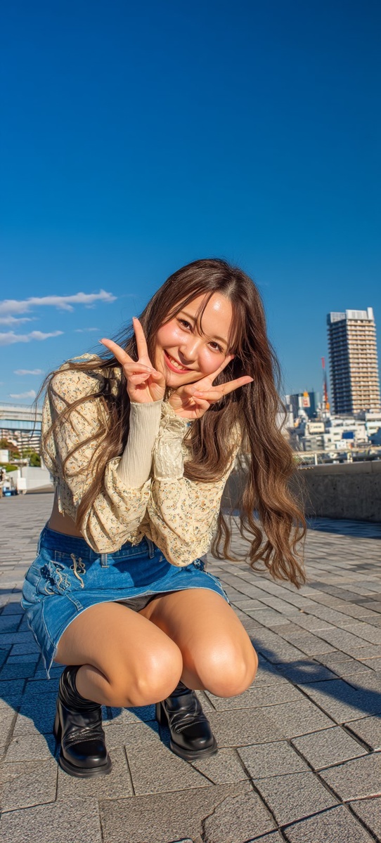 Создано на основе запроса: Japanese yo woman, front shot, Nogizaka46, beautiful wavy long hair combed through, natural lighting, rectus abdominis, oblique abdominal muscles, transverse abdominal muscles, smiling, squatting on the edge of the sidewalk, Osaka cityscape and blue sky, peace sign, professional eye makeup, eyeshadow, eyeliner, eyelash perm, eyelash extensions, eyelash perm, makeup by professional makeup artist, perfect eyes, knees, quadriceps, rectus femoris, adductor femoris, denim super mini skirt, knees, quadriceps, triceps surae, shot with a Canon EOS R5, highly , --- Автоперевод: Японская женщина, передний снимок, nogizaka46, красивые волнистые длинные волосы, прочесанные, естественное освещение, прямая кишка, мышцы брюшной полости, мышцы поперечного живота, улыбающийся, на корточках на краю боковой части, Osaka CityScape и голубое небо, мирный знак, профессиональный главный маки Неплохо получилось? 🤔 https://dzen.ru/id/65c0c65c86e4f837c27b24d7 #ИИ #AI #нейросеть #m