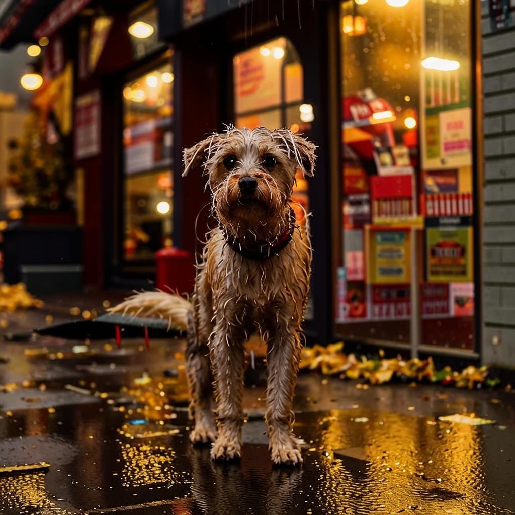 Представьте себе такую картину: поздняя осень, дождь льет как из ведра, 🌧️ холодный, пронизывающий ветер… Бррр, аж мурашки по коже! И вот в такую погоду, возле обычного магазина, стоит ОНА. 😔 Одинокая собачка.