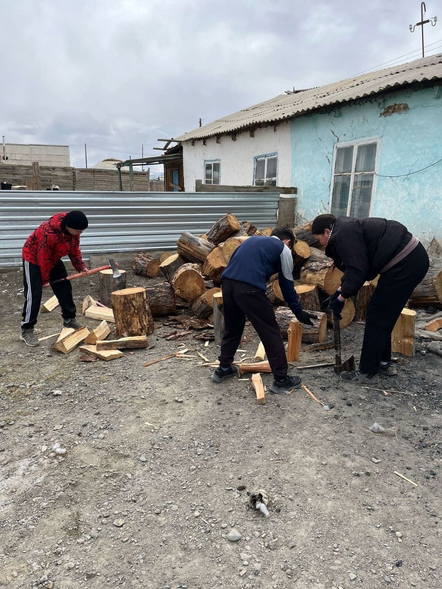 💖 В Кош-Агаче волонтеры из отряда «Вектор добра» вместе с социальным работником помогли одинокой пенсионерке расколоть и сложить дрова