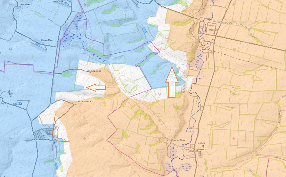 Гуево – Горналь – Басовка /Локня/ – трасса Поповка и Демидовкка Аналогичная карта есть и по балке Журавка с окрестностями… Севернее Купянска идут бои в Каменке С Белогоровкой сложнее… ЧЯ без существенных изменений. СЗ Дзержинска – Щербиновка Западнее осв. Валентиновка, идут бои за Сухую Балку. При этом присутствие ВС РФ фиксируется и много севернее города – вплоть до Плещеевки. На Мирноградском направлении продолжаются бои за Тарасовку, наши закрепились в Водяном 2 и Березовке, взяли мощный УР в Елизаветовке. На западе Покровского направления бои под Новосергеевкой и Новоалександровкой, западнее Надеевки и южнее Котляровки. До админграницы с Днепропетровской областью ок.2 км. Западнее КУрахово продолжаются бои у Алексеевки и Богатыря, ЮВ продолжаются бои в Федоровке, с ЮВ наши подошли к Шевченко. На ЗФ без перемен, идут бои на линии Кменское – Щербаки. == В ТГ у меня 1 канал, более 500 тыс. подп. Все каналы привязаны к карте Сбера 2202 2061 9870 3345 Если счёт другой – это не мой канал