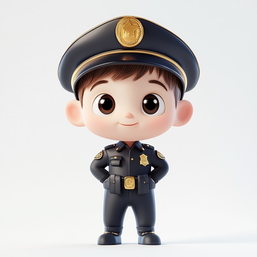 Создано на основе запроса: a cute boy polive officer, he has his helmet on, he has small ears, big head small body, hand drawn 3d render