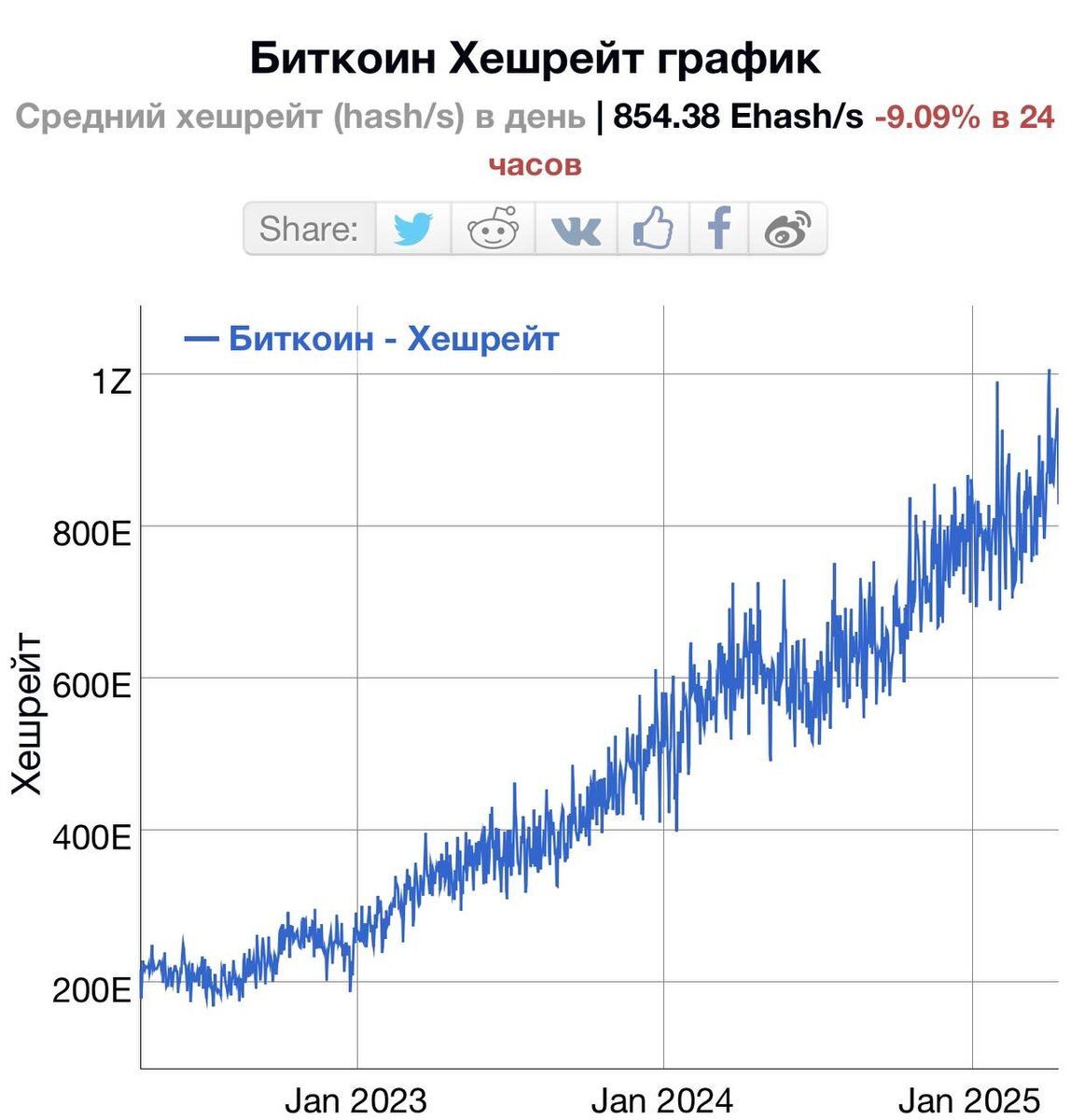 В ответ на пост Сложность добычи биткойна продолжает стремительно расти, это означает что цена ликвидации майнеров все выше. Сигнал на продолжение роста в перспективе.