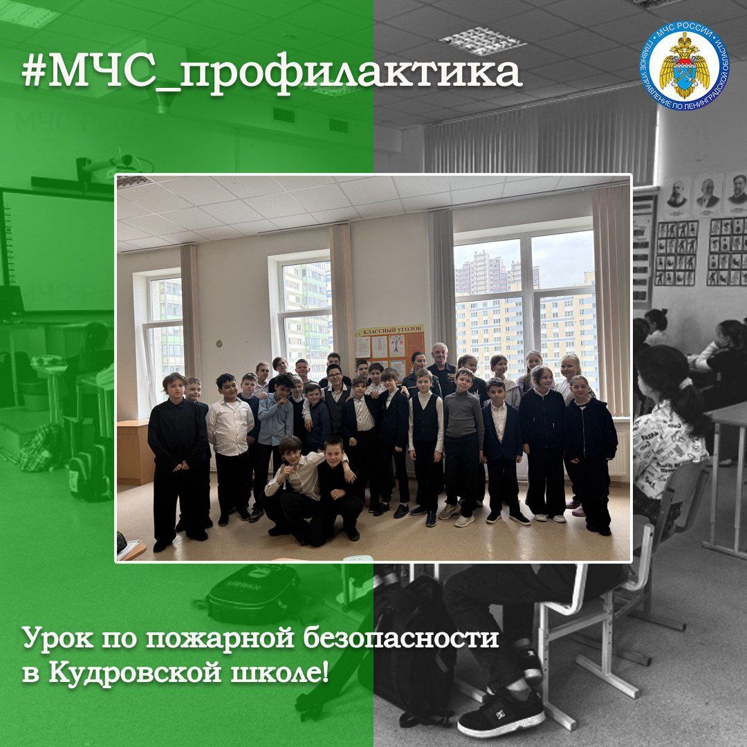 УРОК ПО ПОЖАРНОЙ БЕЗОПАСНОСТИ 👨🏻🚒 Инспектор ОНД и ПР Всеволожского района и представитель местного отделения Всероссийского добровольного пожарного общества Ленинградской области провели урок по соблюдению правил пожарной безопасности для учеников Кудровской школы. 🔸 Ребятам рассказали о недопустимости весеннего поджога травы и о безопасном поведении вблизи водоёмов в весенний период. #МЧС_профилактика МЧС Ленинградской области