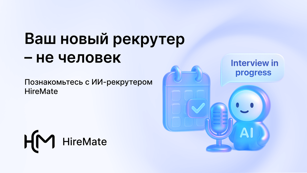Если ваш найм буксует, а рекрутеры захлебываются в переписке и созвонах — самое время познакомиться с новым коллегой. HireMate — это цифровой рекрутер, который самостоятельно обрабатывает отклики кандидатов, проводит видео собеседования и обеспечивает полный цикл коммуникации с соискателями — без участия человека. Он не просит отпуска. Не путается в кандидатах. Работает по шаблону, но гибко. Всё делает вовремя и точно. И в 3 раза дешевле. Корректно сформировать вакансию помогут наши менеджеры – 1-2 часа ручной работы, что уже кратно быстрее существующих решений, а дальше всю работу возьмет на себя наш цифровой коллега. P.S. Мы уже разрабатываем модуль генерации вакансии для полной автоматизации. Следите за обновлениями! HireMate полностью берёт на себя переписку с кандидатами: У заказчика всегда есть возможность скорректировать скрипт, убрать или добавить вопросы. 📩 На выходе — ёмкий отчёт по каждому кандидату: результат общения, решение (приглашение/отказ), причины, а также полное ре