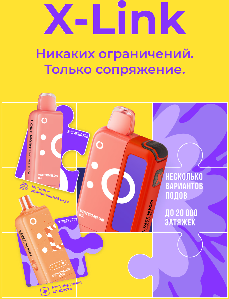 Вейп-индустрия динамично развивается, и Lost Mary в очередной раз демонстрирует лидерство в инновациях. Их свежий релиз, X-Link 20000, представляет собой не просто электронную сигарету, а POD-систему многоразового использования нового типа, разработанную с акцентом на потребности самых взыскательных потребителей. Причина успеха проста: он комплексно удовлетворяет запросы всех групп пользователей, включая нтех, кто стремится к максимальной функциональности и разнообразию вкусов. Двойной аккумулятор: Для пользователя это означает: максимум автономности, минимум суеты, отличный пользовательский опыт. Инженеры Lost Mary действительно продумали каждую деталь: Кнопки управления: Lost Mary X-Link 20000 — не просто девайс, который закончился и выбрасывается. Здесь всё устроено умнее: Для оптовика это означает: повторные покупки, привязка клиента к продукту и высокая лояльность. Lost Mary традиционно делает ставку на яркие, сочные и сбалансированные вкусы. В новой серии X-Link 20000 — 10 вкусо