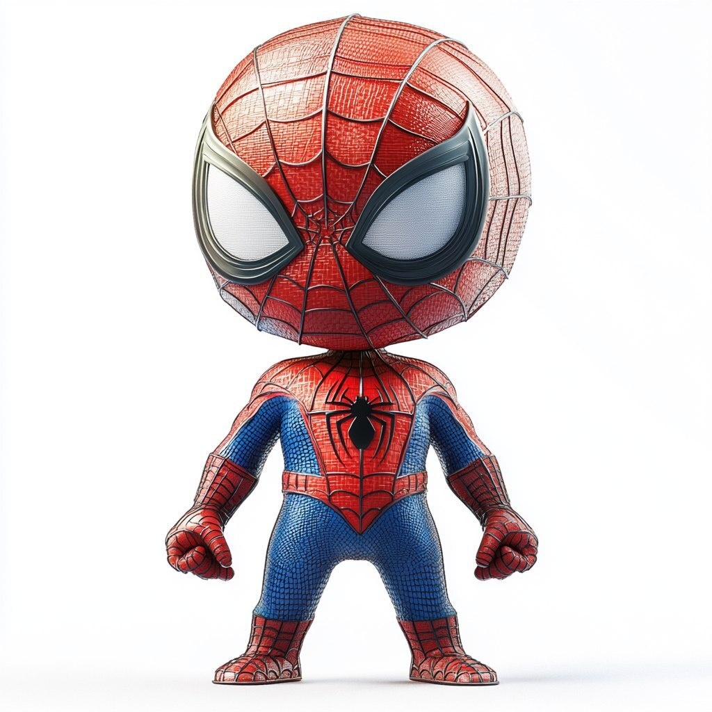 Создано на основе запроса: a cute kid dressed up as spiderman for halloween, big head small body, hand drawn 3d render style, on white