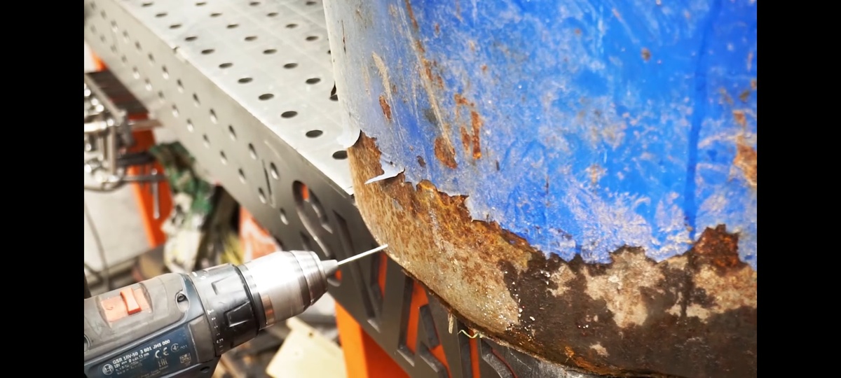 Валялась на даче старая металлическая бочка и решил дать ей вторую жизнь. В конце статьи оставлю ссылку на видео Для начала беру фанеру и вырезаю круг Вставляю круг в бочку На бочке делаю отверстия для саморезов Зафиксировал саморезы Вырезал ещё круг из фанеры и с помощью шуруповерта соединил ее с дном бочки Пробежался пеной Самоделка готова. Скажете, зачем же делать дно на бочке, если оно есть. Показываю фото дна бочки. Теперь в этой бочке можно хранить зерно для кур. Вместил сюда 5-6 мешков Сразу же сделал крышку Куры довольны Ссылка на видео