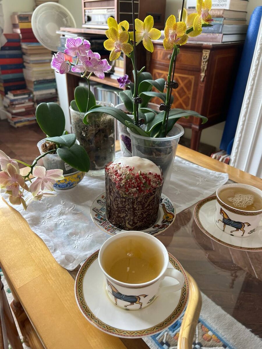 И мне кажется, что посыпка кулича подобрана цветом в блюдце императорского фарфора 😁