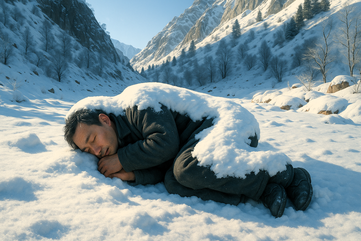 Вокруг снег и тишина. Но это не уютная зимняя тишина, а ледяная, безжалостная. Холод сковывает тело, мысли путаются, мозг словно погружается в сон, из которого нет выхода. Друзья рядом, но они беспомощны. Или, возможно, они уже ничего не чувствуют.