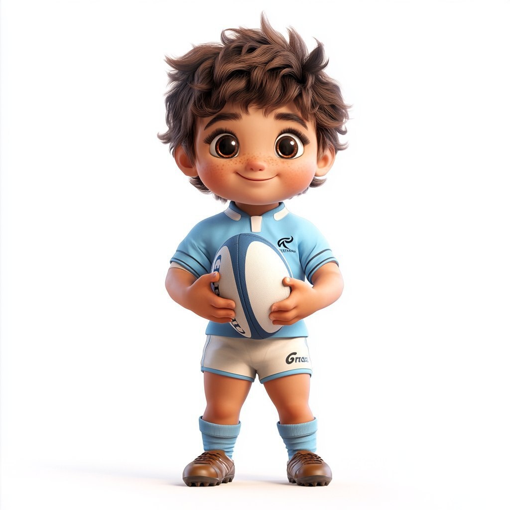 Создано на основе запроса: a cute tanned kid wearing a sky blue retro collar rugby jersey with footy boots and socks, he is holding a rugby ball, big head small body, hand drawn 3d render style, on white background --- Автоперевод: Симпатичный загорелый ребенок в небе сине -сине -ретро -воротниц с майкой регби с пешеходными сапогами и носками, он держит мяч по регби, большая голова, маленькое тело, нарисованный вручную 3D -стиль рендеринга, на белом фоне Что скажешь? 🤔 https://dzen.ru/id/65c0c65c86e4f837c27b24d7 #ИИ #AI #нейросеть #midjourney #art