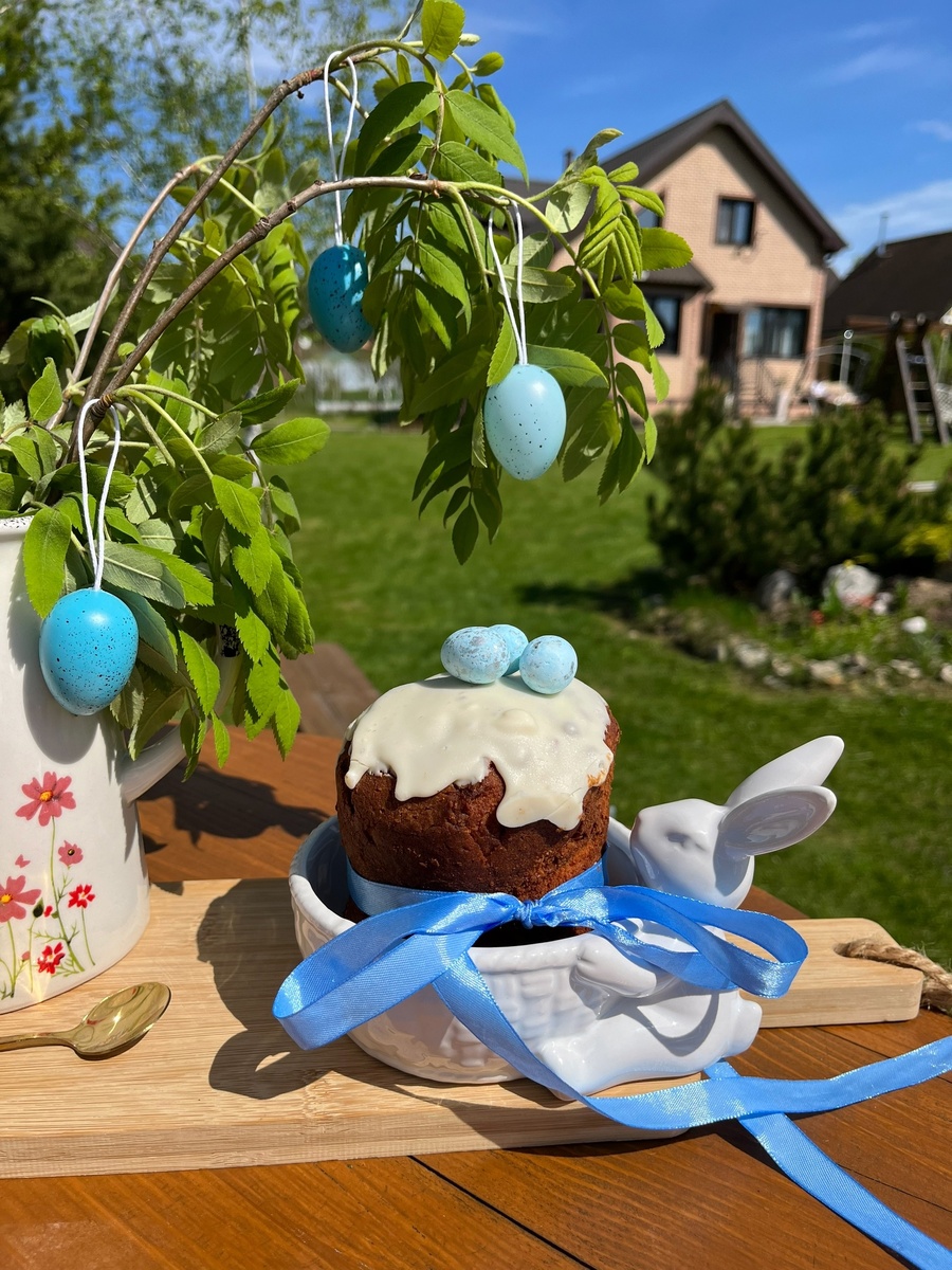 Приготовление кулича: 🌿Растопите масло, взбейте с яйцами и сахаром. 🌿Добавьте тёплое молоко, дрожжи и просеянную муку. Замесите тесто. 🌿Разложите по небольшим формам (наполовину), дайте подойти 20 минут. 🌿Выпекайте в духовке при 180 °C 20–25 минут.