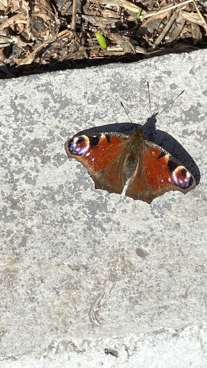 😍 природа ожила, белок сфотографировать не успели. А вот бабочку успели, и выше потом заметила, что травка проклевывается. В общем энергией наполнились и домой пора, на процедуры 😅