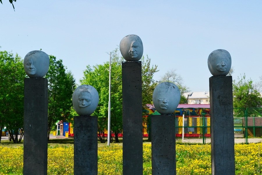 «Эмоции сна» — пожалуй, самая запоминающаяся скульптура кемеровской набережной. Петербургский скульптор Константин Новиков запечатлел пять лиц своих друзей, на каждом из которых выражены различные эмоции во время сна.