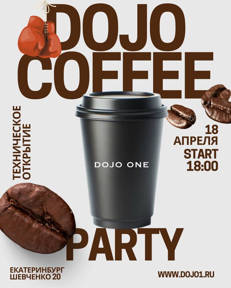 Дорогие друзья! Взбодритесь!😝 С радостью сообщаем, что 18 апреля в Екатеринбурге состоится техническое открытие нашей DOJO coffee! 🎉 Мы будем рады видеть каждого из вас в нашем новом уютном пространстве. Мы проверили эффективность концепции в нашем московском клубе, где кружечка DOJO кофе стала прекрасным дополнением для времяпрепровождения наших гостей. Наполненная духом воинов и вкусом настоящих свежесваренных зерен, эта атмосфера теперь доступна и в Екатеринбурге! Приглашаем вас окунуться в мир вкусов и ароматов, которые мы привнесли на Урал из кофейной столицы. Ждем вас 18 апреля в 18:00! Не упустите возможность стать частью этого события! С уважением, Команда DOJO coffee ☕️✨
