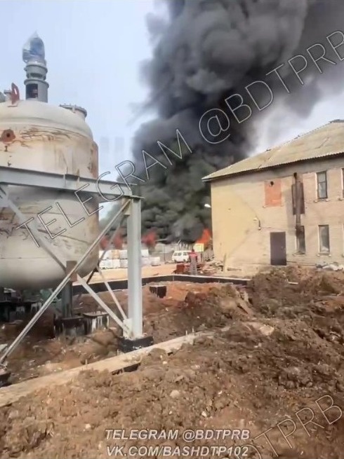 В Уфе по повышенному рангу тушат здание цеха по производству лодок ПВХ
