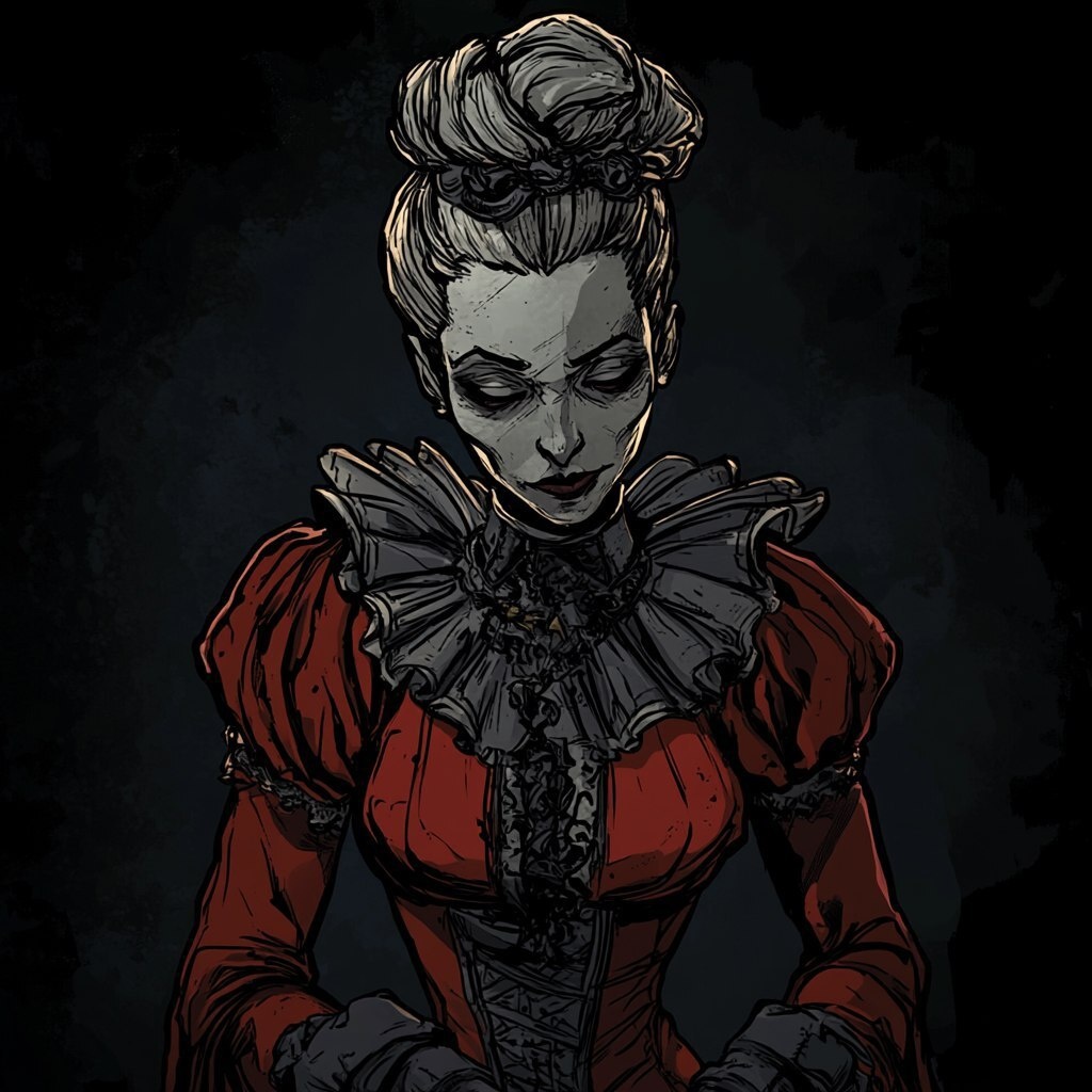 Создано на основе запроса: creepy aristocrat lady in the style of Darkest Dungeon Crimson Court characters