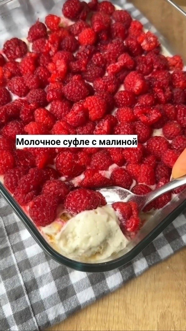 • Свежая малина для украшения 👩🍳 Процесс приготовления: Первым делом замачиваем желатин в небольшом количестве воды - пусть набухает, пока мы готовим остальные ингредиенты. В сотейнике смешиваем сливки и молоко. Добавляем сахар и ставим на медленный огонь. Важно: прогреваем смесь, но ни в коем случае не кипятим! Когда желатин набухнет, добавляем его в молочно-сливочную смесь и тщательно размешиваем до полного растворения. Остужаем смесь до комнатной температуры, затем отправляем в морозилку на 15 минут. Достаём из морозилки и взбиваем миксером до пышной массы. Пока суфле взбивается, готовим основу: окунаем печенье в молоко и выкладываем на дно формы. Аккуратно расп