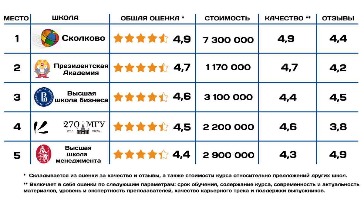 Лучшие программы: СКОЛКОВО, ВШЭ